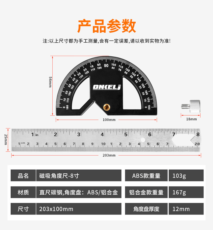 - Specifications: Magnetic angle ruler 8 inches - aluminum alloy model