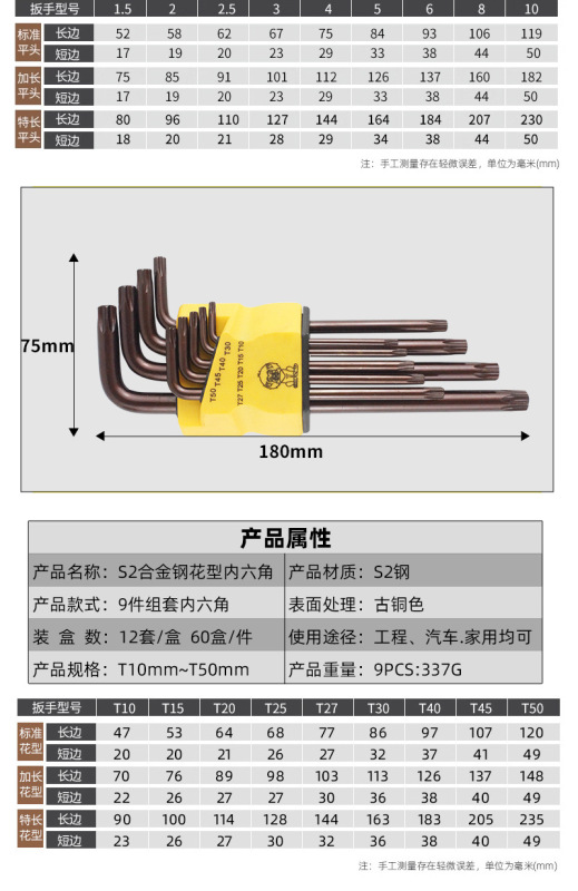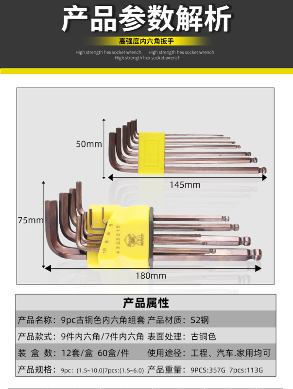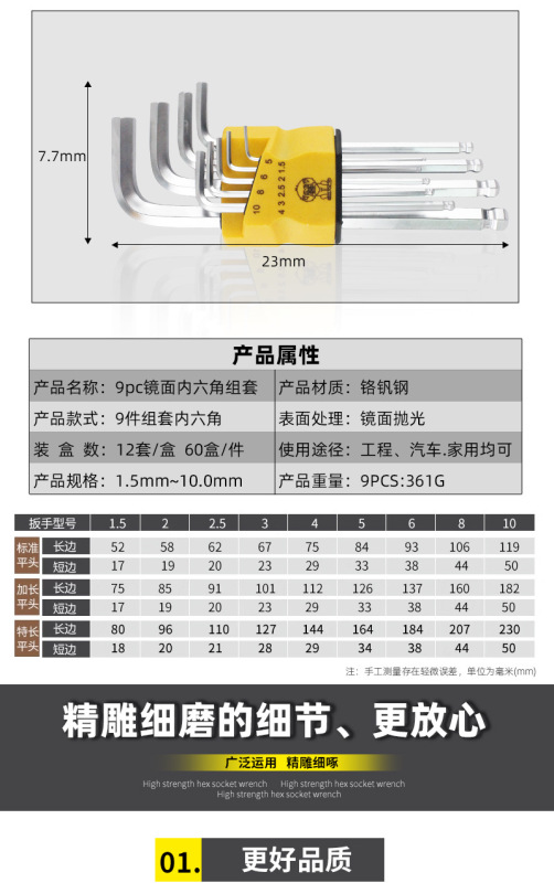 - Specifications and models: (Silver) 9-piece set of hexagonal wrenches
