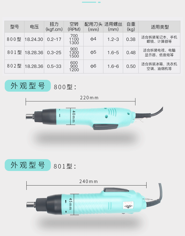 - Specifications and models: New electric batch machine (801) 5mm