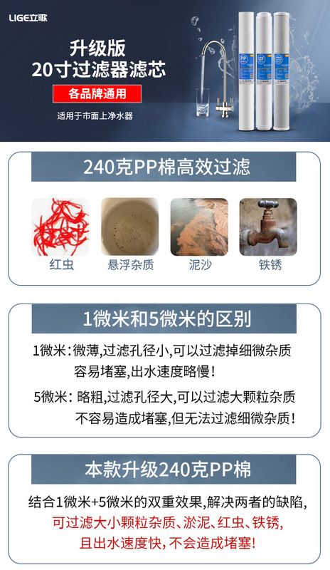 - Function: Filters rust, sediment, impurities, discoloration,异味, bacteria, etc.