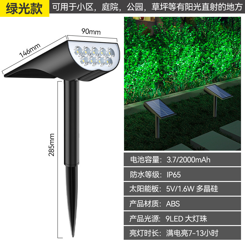 - Specification Category: High-Power Solar Ground Floodlight [Green Light]