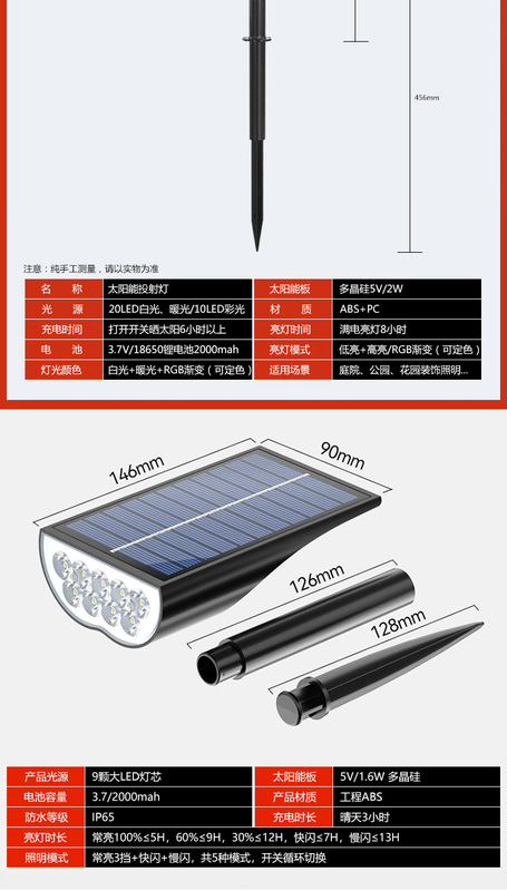 - Specification Category: High-Power Solar Ground Floodlight [Warm Light]