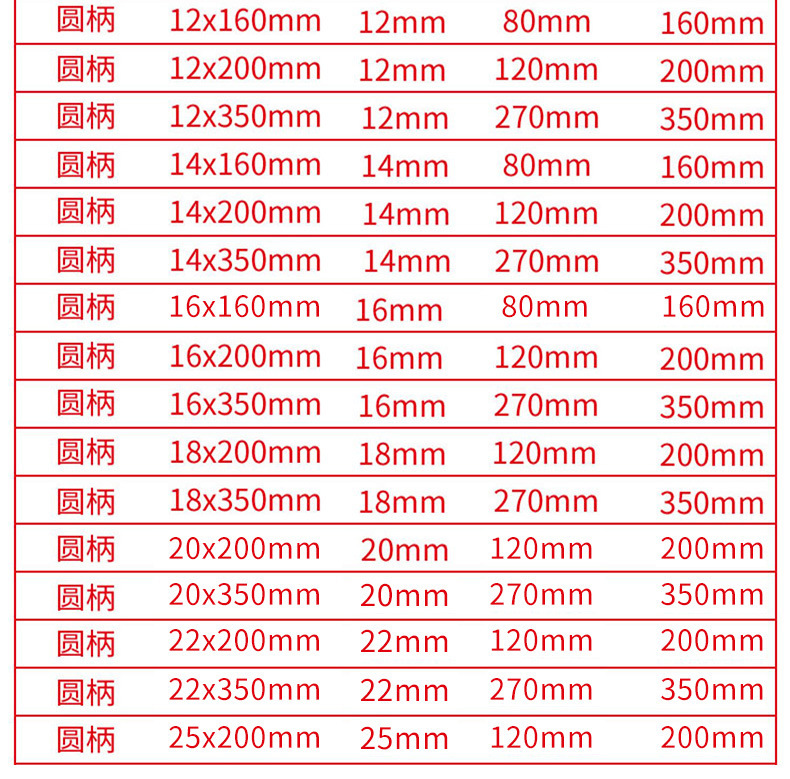 - 型號:【圓柄】12*200