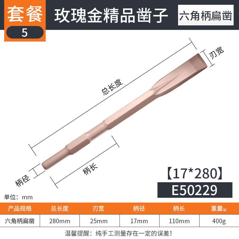 - Model: [Hexagonal handle] 17*260 (flat chisel)