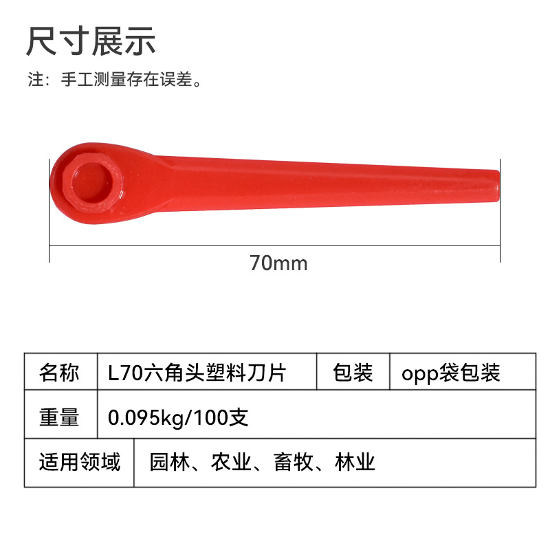 - Product Specifications: L70 Red Hexagonal Connector Plastic Blade