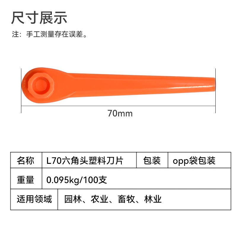 - Product Specifications: L70 Orange Hexagonal Connector Plastic Blade