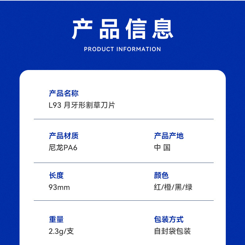- 規格:L93黑色月牙形刀片