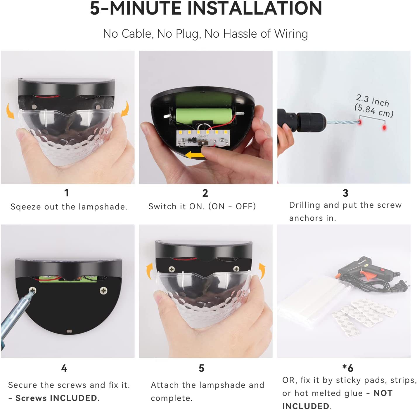 - Specification classification: 6LED semicircular wall lamp [black shell warm light]