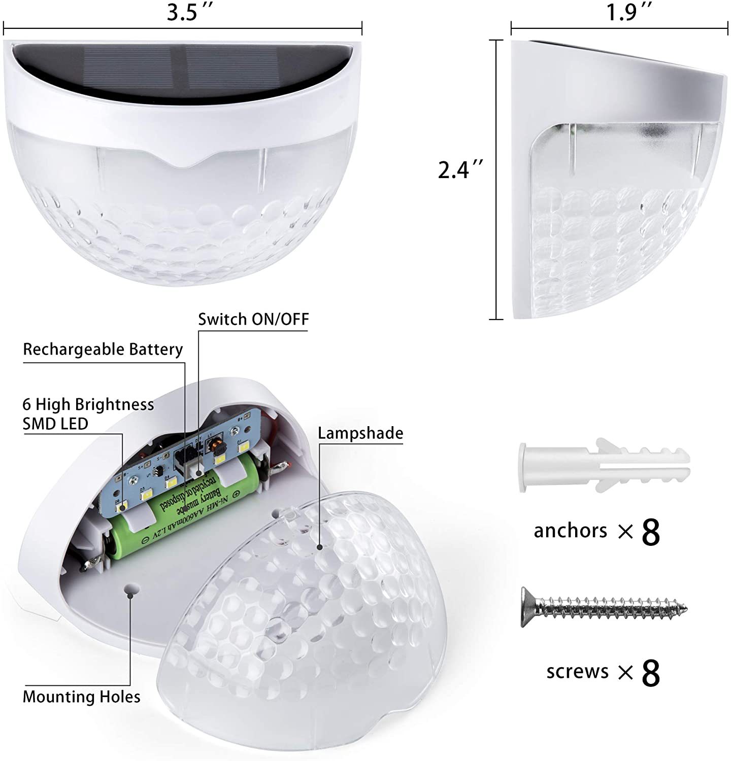 - Specification classification: 6LED semicircular wall lamp [white shell white light]