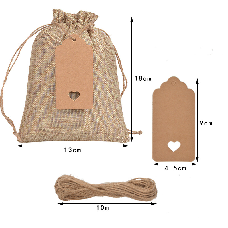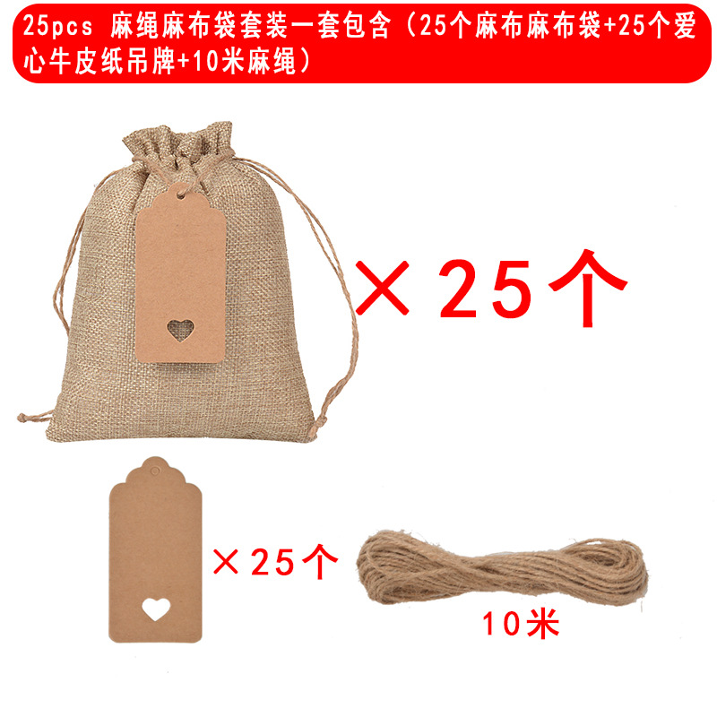 - 規格:原麻色10*15cm(25個麻繩麻布袋+25個愛心吊牌+10米麻繩)