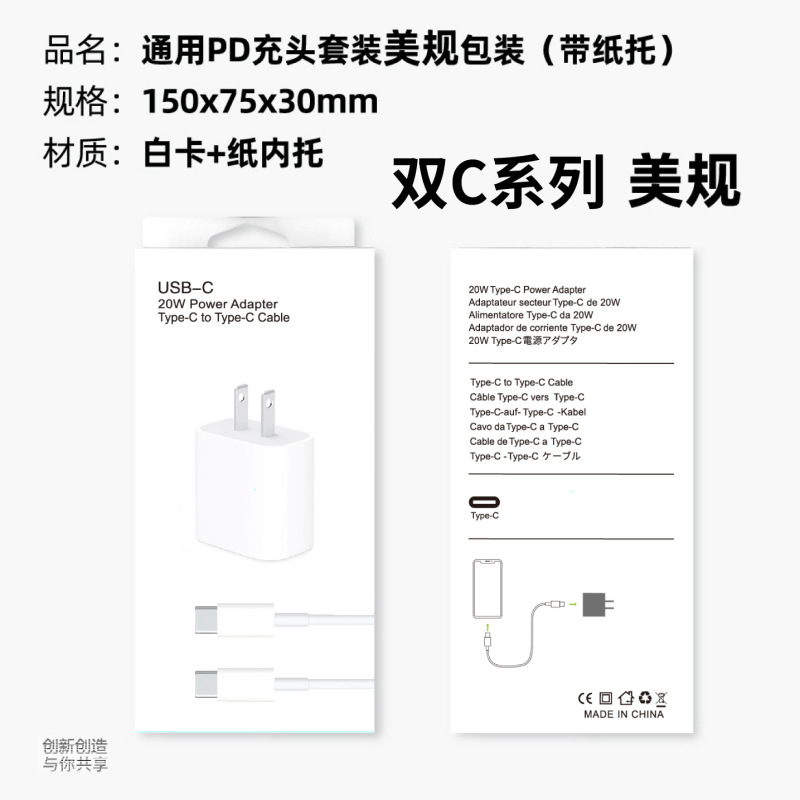 - Specifications: Universal PD charger set in US standard packaging (with paper tray)