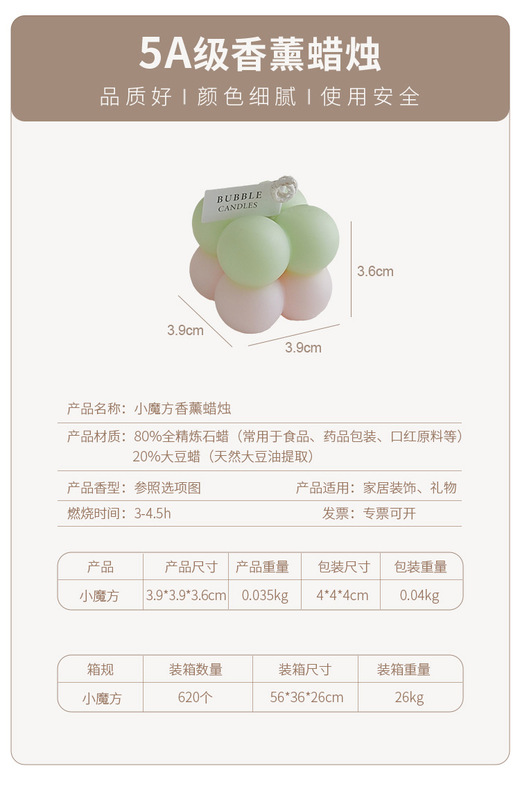 - 產品:漸變雙色小魔方香薰蠟燭