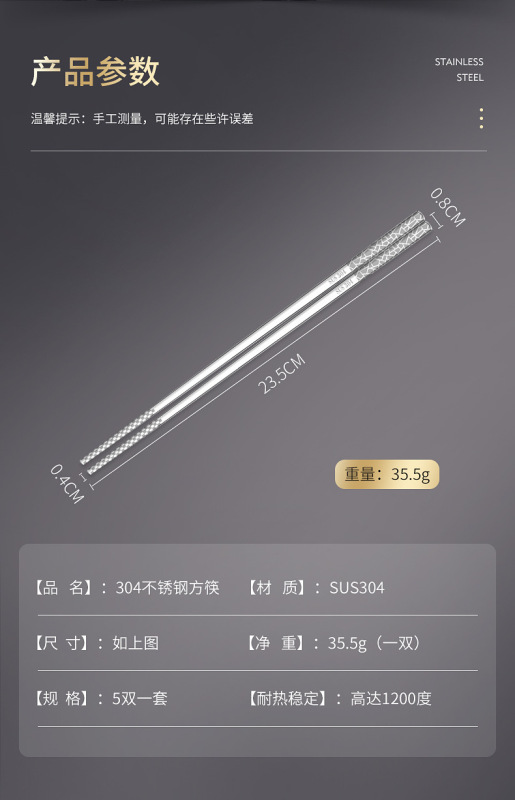 - Specifications: Anti-slip broken porcelain square chopsticks 23cm set