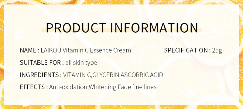 - Product specification: 25g Vitamin C Essence Cream (Export product, prohibited for domestic sales, purchase is considered a sample and this disclaimer is accepted by default)