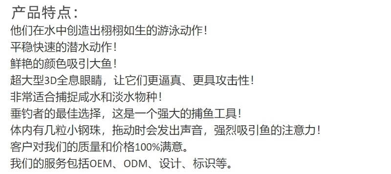 - Bait Shape: Artificial Lure / Bionic Lure