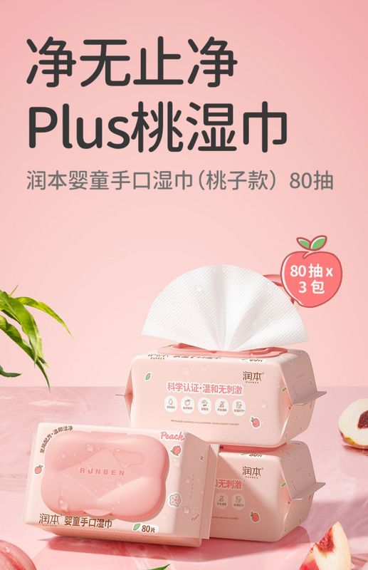 - Specification: Peach-shaped wet wipes 80 sheets