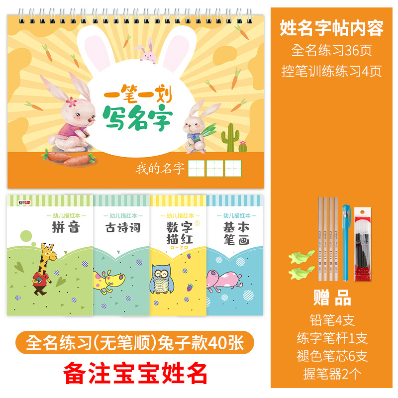 - Specifications: Contains 40 pictures of rabbits with stroke order + four books of red drawings (please note the baby’s name)