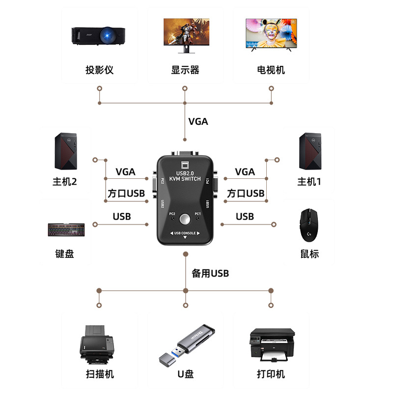 - Purpose: KVM switch