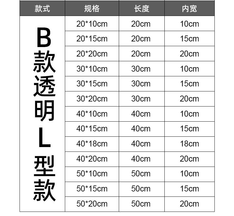- Specification: B-model L-shape: 40*15cm with invisible adhesive