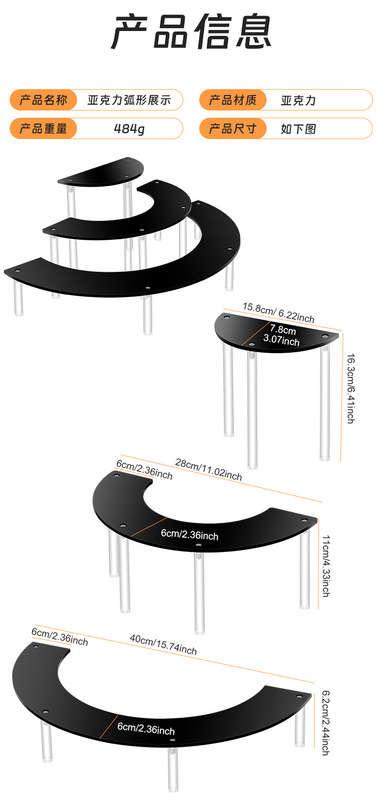 - Specification: Transparent Semi-Circular Display Stand