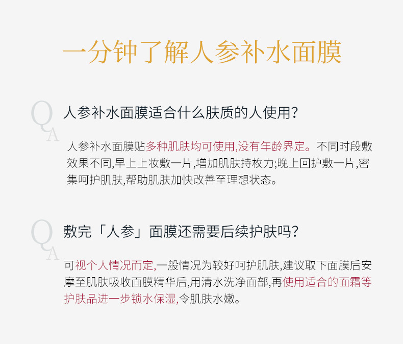 - 淨含量:人參面膜25ml*10片*3盒+單片面膜