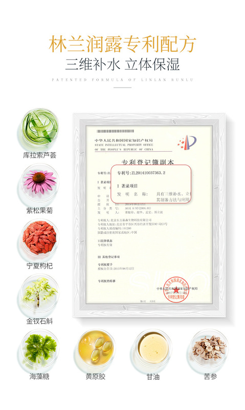 - 化妝品功效:補水保濕