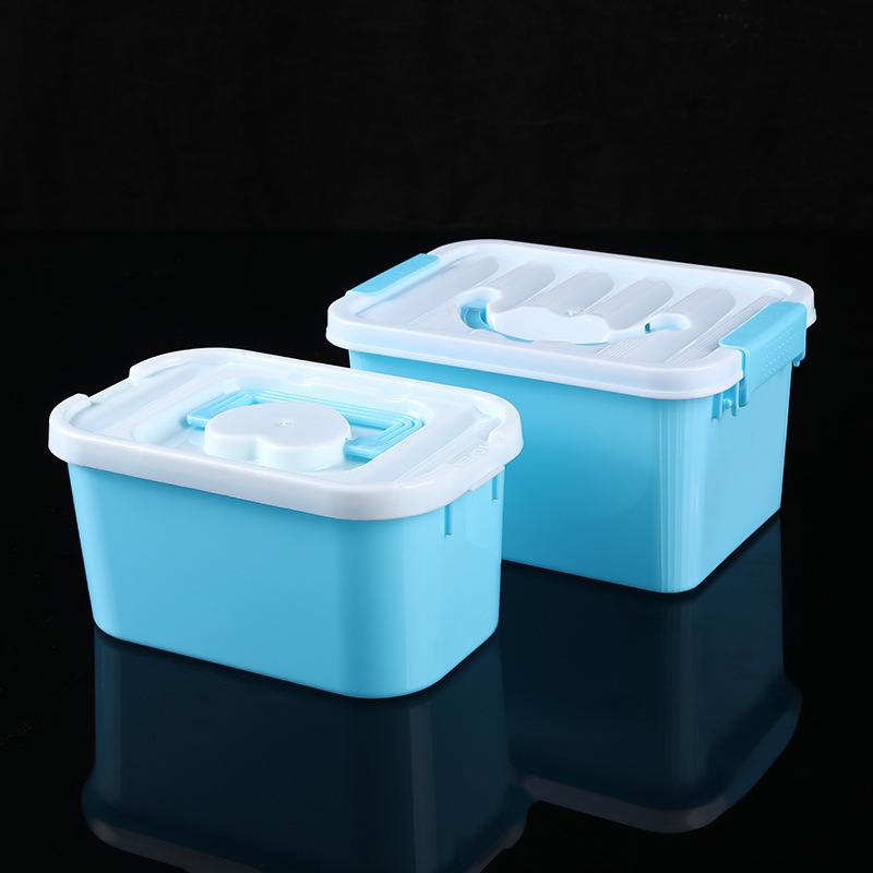 - Model: Blue Base, White Lid Square Bucket