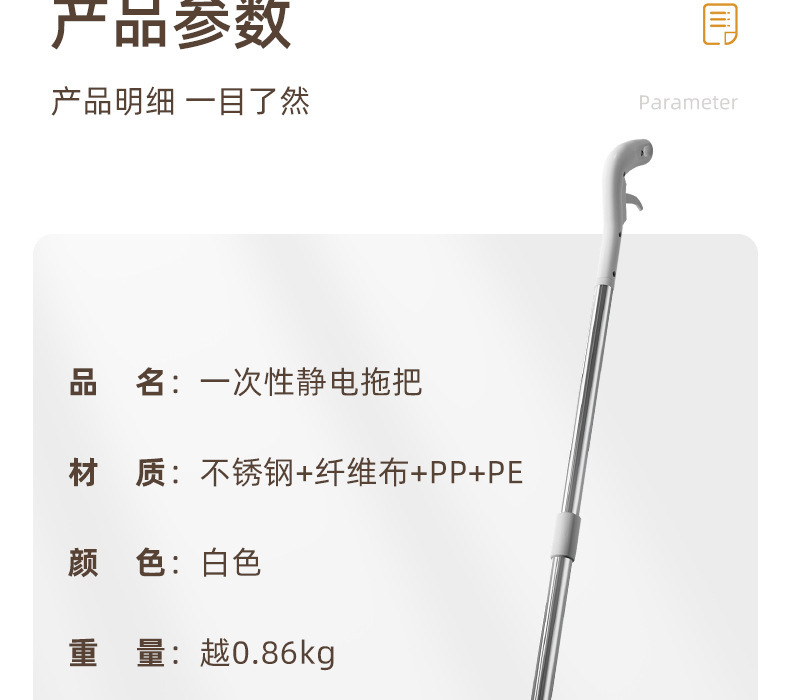 - Mop rod material: stainless steel