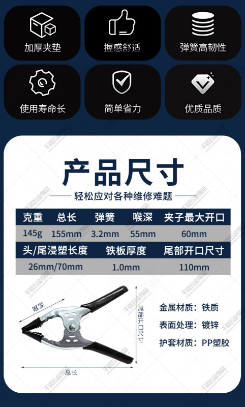- Specifications: 6-inch strong clip [black]
