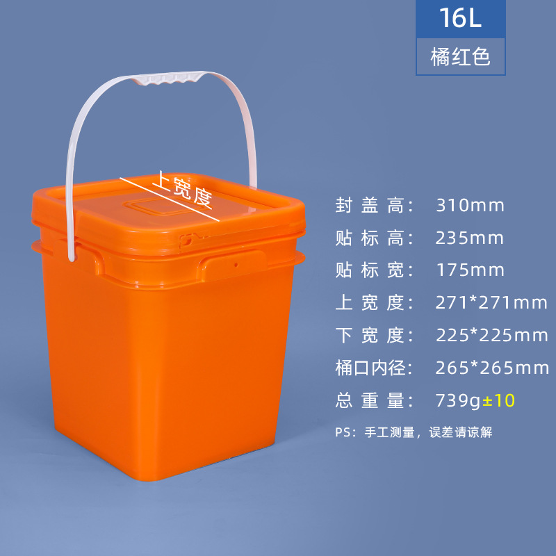 - Specifications: Square bucket-16L-orange