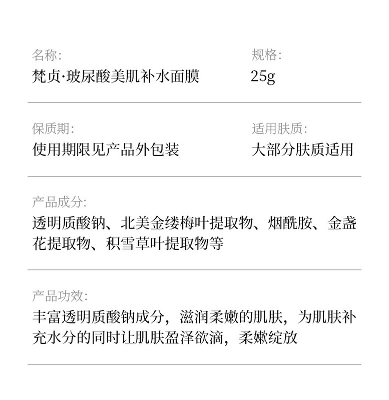 - 產品規格:梵貞蠶絲氨基酸水潤面膜25g