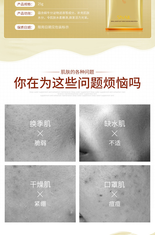 - 產品規格:蝸牛奢寵柔嫩潤膚面膜貼片裝(新)25g