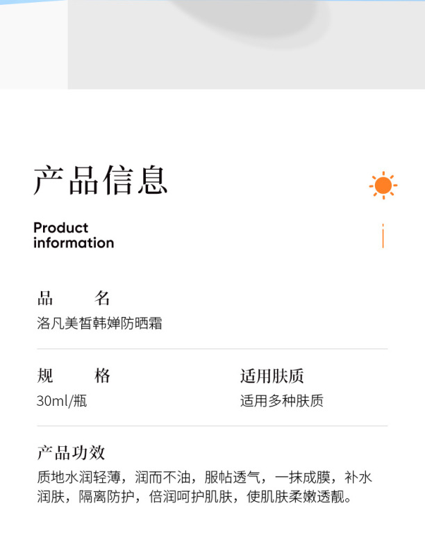 - Sunscreen SPF: SPF50+