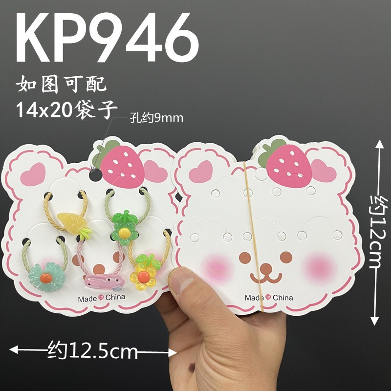 - Specifications: kp946 Big Strawberry Bear five-card slot hair tie card, about 100 pieces