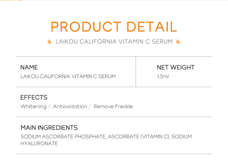 - 產品名稱:萊蔻維他命C精華液袋包1.5ml