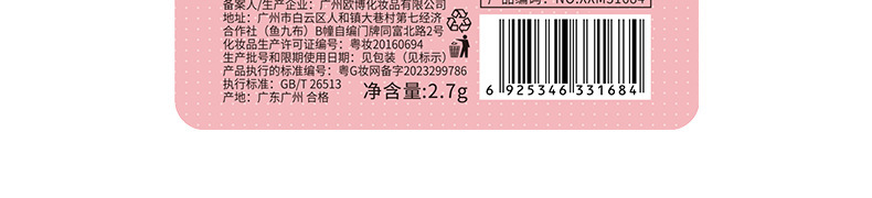 - Special Cosmetics Registration Number: Yue G Beauty Network Preparation No. 2018147932