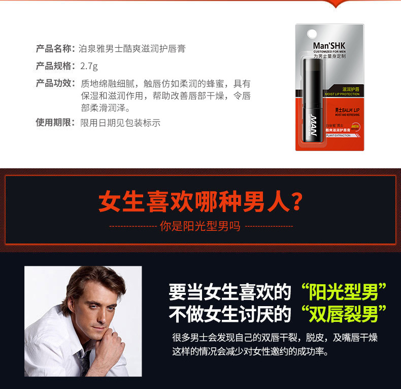 - Net Content: Pochunya Men's Gentle Moisturizing Lip Balm (New) 2.7g