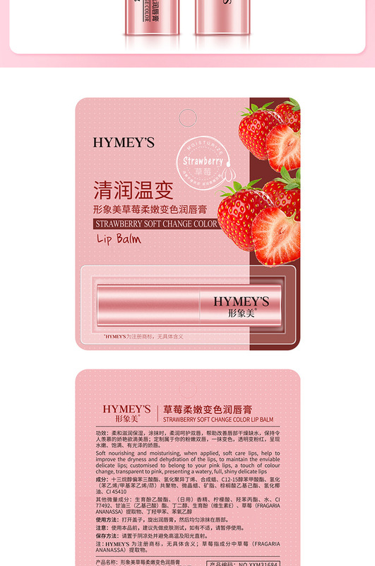 - Net Content: HYMEY'S Image Honey Strawberry Soft Color-Change Lip Balm (New) 2.7g