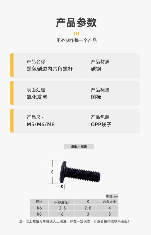 - Product specifications: M6*12