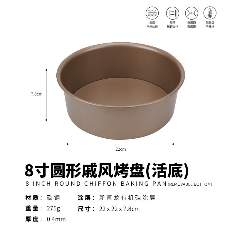 - Specifications: 8-inch live bottom chiffon baking pan (gold)