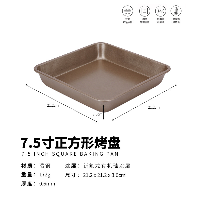 - Specifications: 7.5-inch square baking pan (gold)