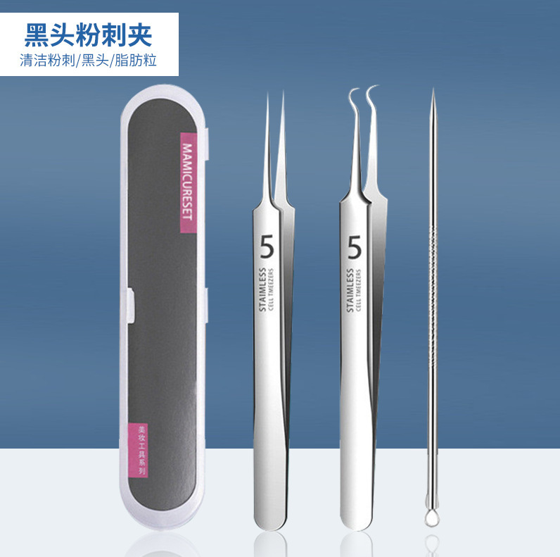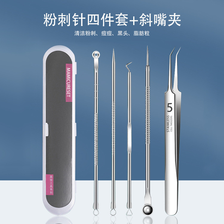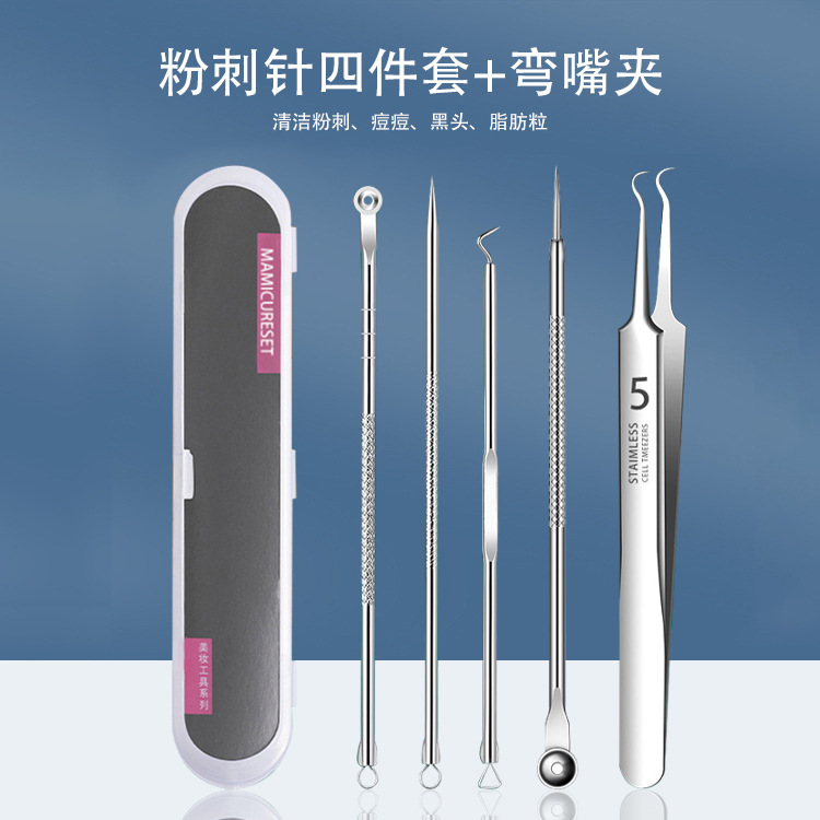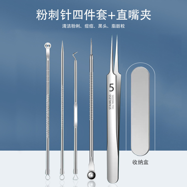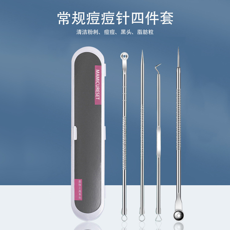 - Specifications: 4-piece acne needle set + straight mouth clip [in iron box]