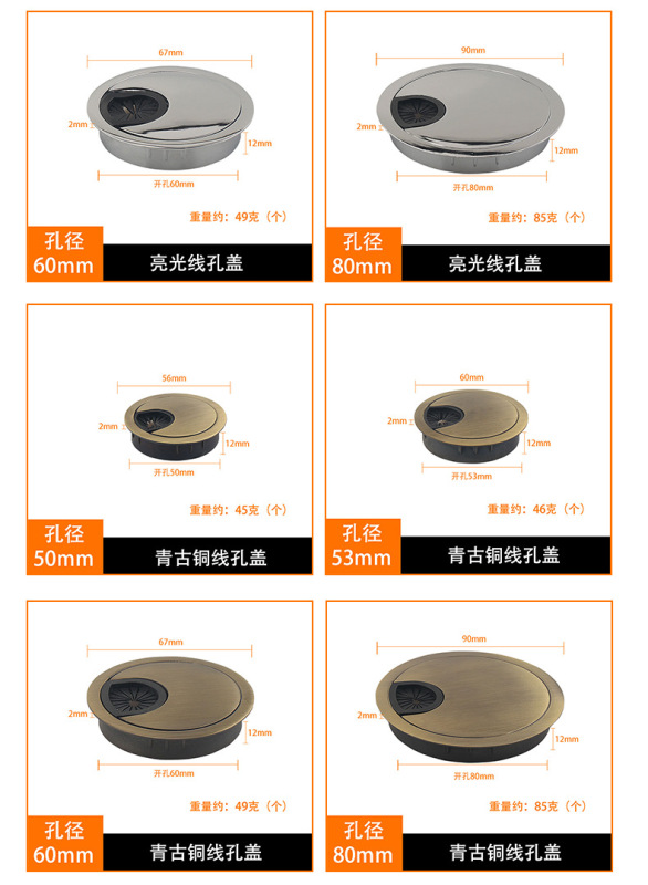 - 適用範圍:桌面穿線孔盒