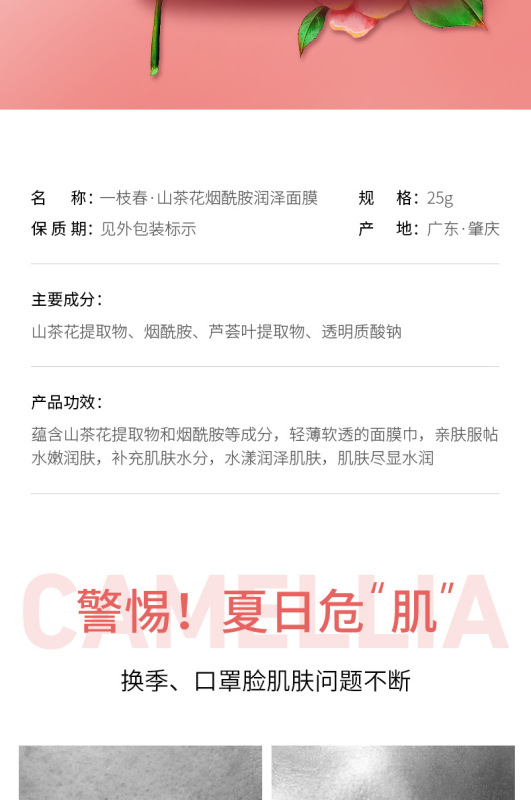 - Product Specifications: Yizhichun Camellia Niacinamide Moisturizing Mask (New) 25g