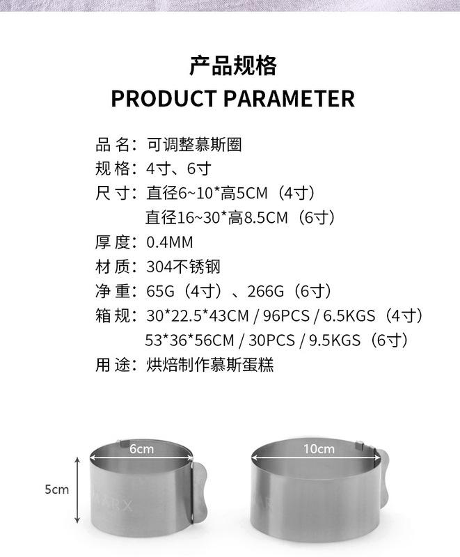 - Specification: 6-inch Adjustable Mousse Ring