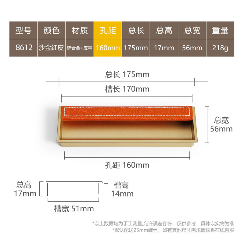 - Specification: 8612-160 Sand Gold Red Leather