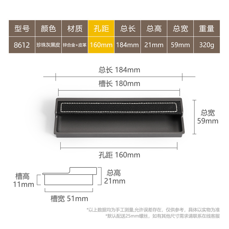 - Specification: 8613-96 Pearl Grey Black Leather