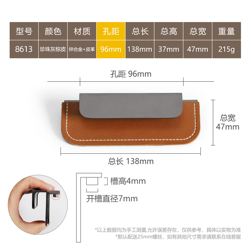 - Specification: 8613-96 Pearl Grey Brown Leather