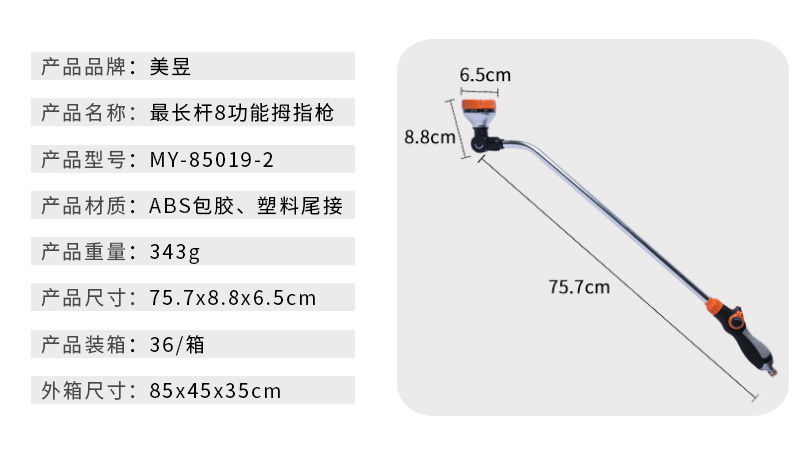 - Specifications: Longest pole 8-function water gun (one-piece tail connection)