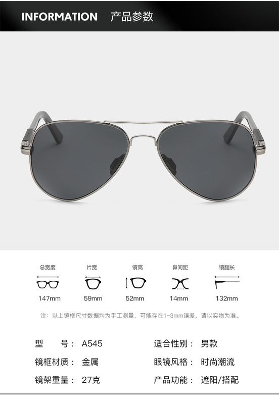 - 眼鏡款式:蛤蟆鏡